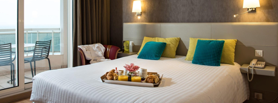 Pour profiter pleinement d’un séjour automnal à Menton, le choix de l’hébergement est essentiel. L’Hôtel Riva Art & Spa, situé en bord de mer, combine confort, élégance et bien-être. Ses chambres modernes, certaines avec terrasse et vue panoramique sur la Méditerranée, offrent un cadre idéal pour un week-end ou quelques jours de détente.