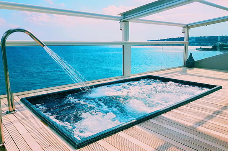 Au dernier étage de l’hôtel, le spa rooftop avec jacuzzi extérieur est un véritable havre de paix. Ici, le temps s’arrête : massages relaxants, soins esthétiques et rituels bien-être vous attendent, le tout avec une vue panoramique sur la Méditerranée.